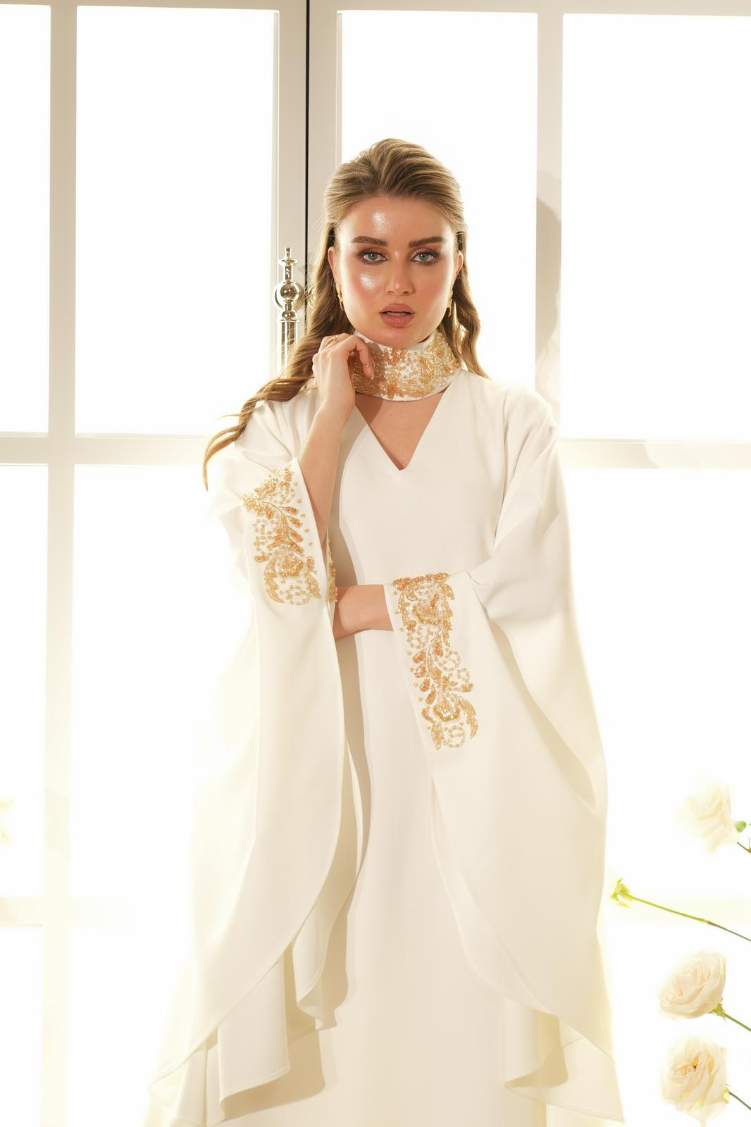 فستان كريب مشكوك يشمل السعر باند او تاج للشعر حسب اختيارك